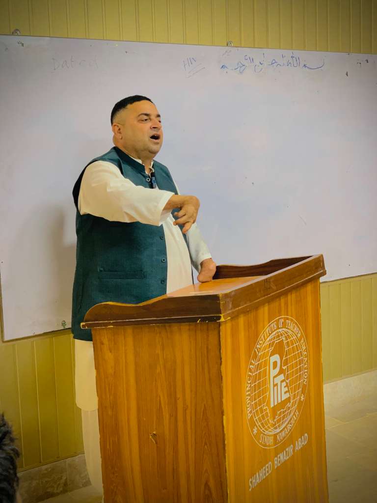 Nawabshah: Renowned disability rights activist and President of the National Disability & Development Forum (NDF) Pakistan, Mr. Abid Lashari, delivered an insightful lecture on Inclusive Education at the Provincial Institute of Teacher Education (PITE) Sindh, Nawabshah.