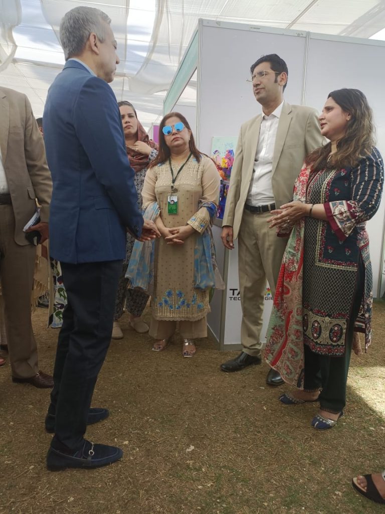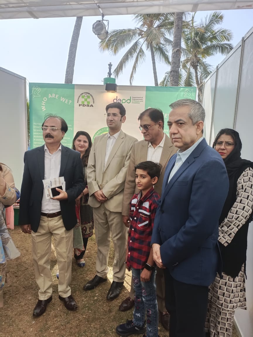 Hon. Tuaha Ahmed Faruqui Secretary DEPD is seen visiting NDF-PDSA stall at Employability Expo organized by Shifam at Beach Luxury Hotel Karachi.