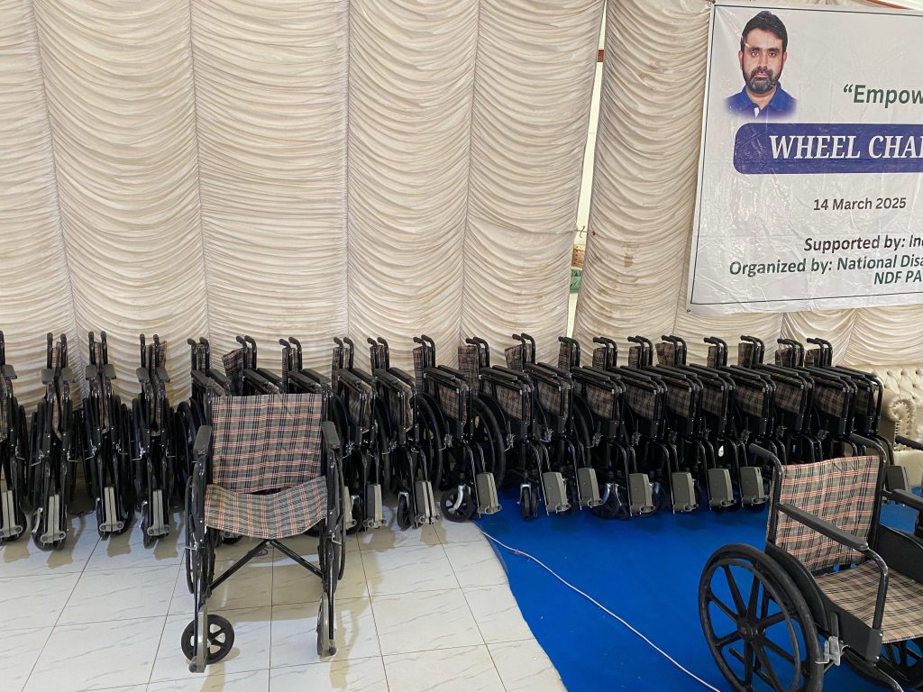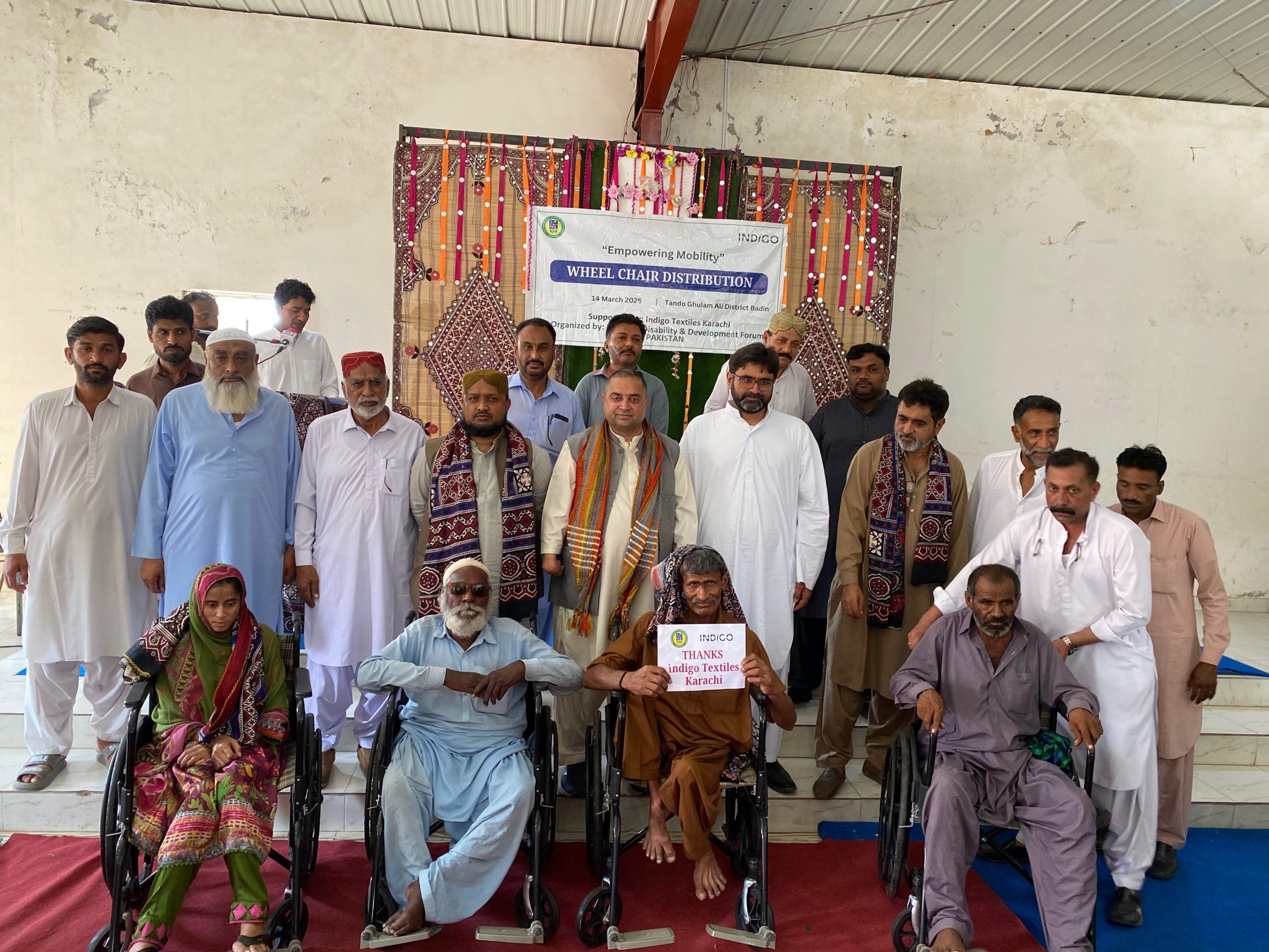 Tando Ghulam Ali: The National Disability & Development Forum (NDF) Pakistan, in collaboration with Indigo Textile Karachi, successfully distributed 25 wheelchairs to persons with disabilities in Tando Ghulam Ali.