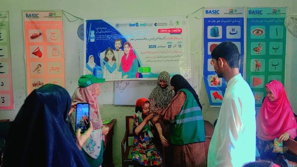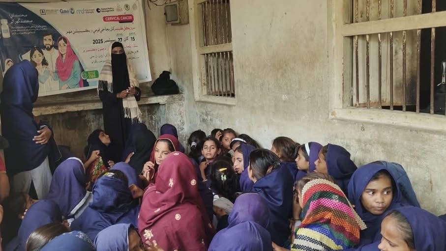 Hyderabad: The National Disability & Development Forum (NDF Pakistan), with the support of Gavi, continues to organize awareness sessions in various villages and urban areas of Hyderabad regarding the importance of the HPV vaccine and other immunizations. These sessions are being held in schools, households, and public spaces to provide accurate information to as many women and parents as possible. Medical experts stated that cervical cancer is a common yet treatable cancer among women, usually caused by long-term infection with the Human Papillomavirus (HPV). Risk factors include multiple pregnancies, smoking, weak immunity, and unsafe sexual practices. In its early stages, the disease often remains silent, but as it progresses, symptoms such as unusual vaginal bleeding, bleeding during menstruation or after intercourse, foul-smelling discharge, pain in the lower back or abdomen, and difficulty in urination may appear.